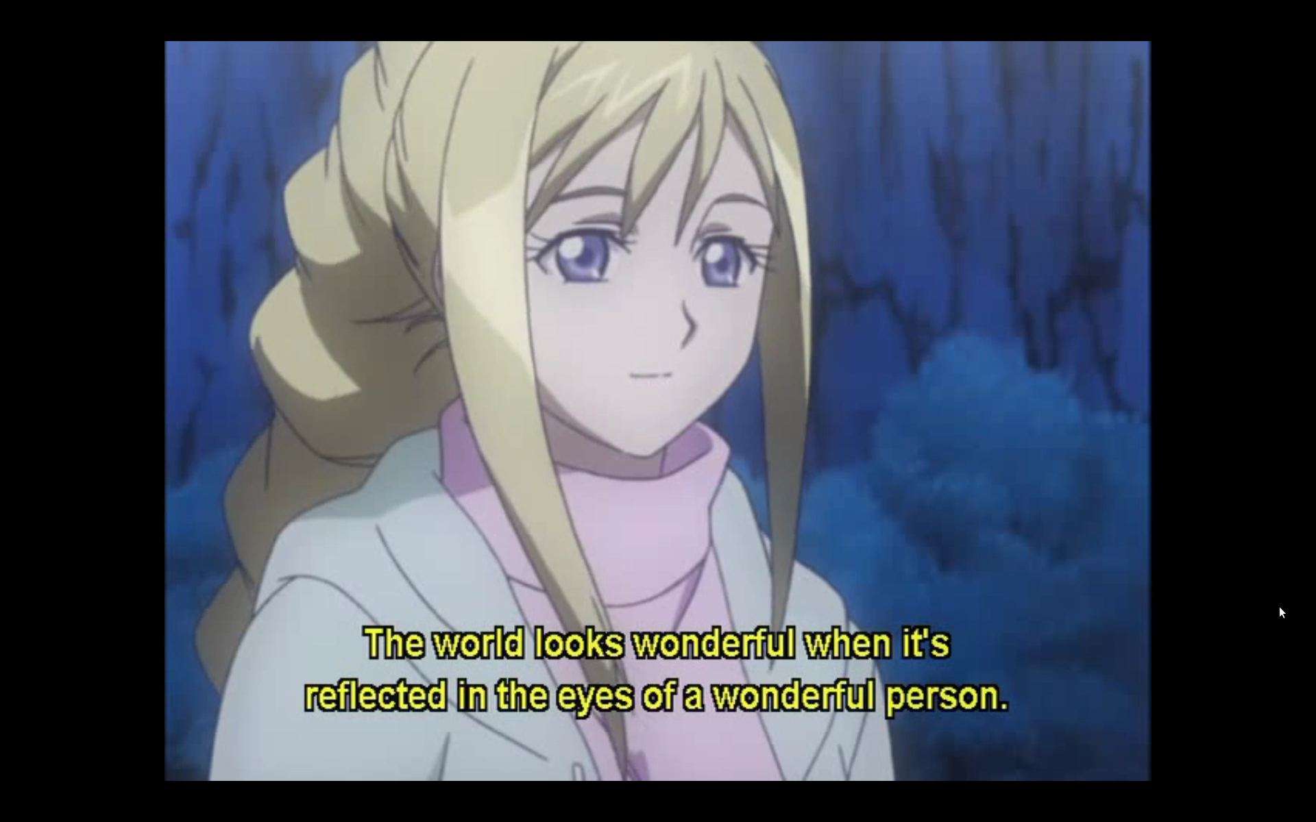 In the anime Aria, S1-EP5, we have a wonderful conversation between Alicia (blond), Akari (pink), and AI who is off screen. Akari is telling this story to AI in an email from Mars (Aqua) to Earth (Manhome) which lays out what this story is all about which is belief in wondrous things.